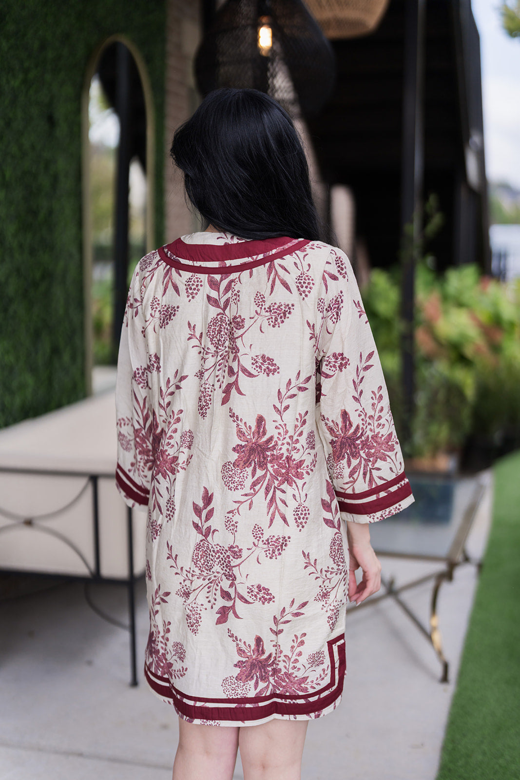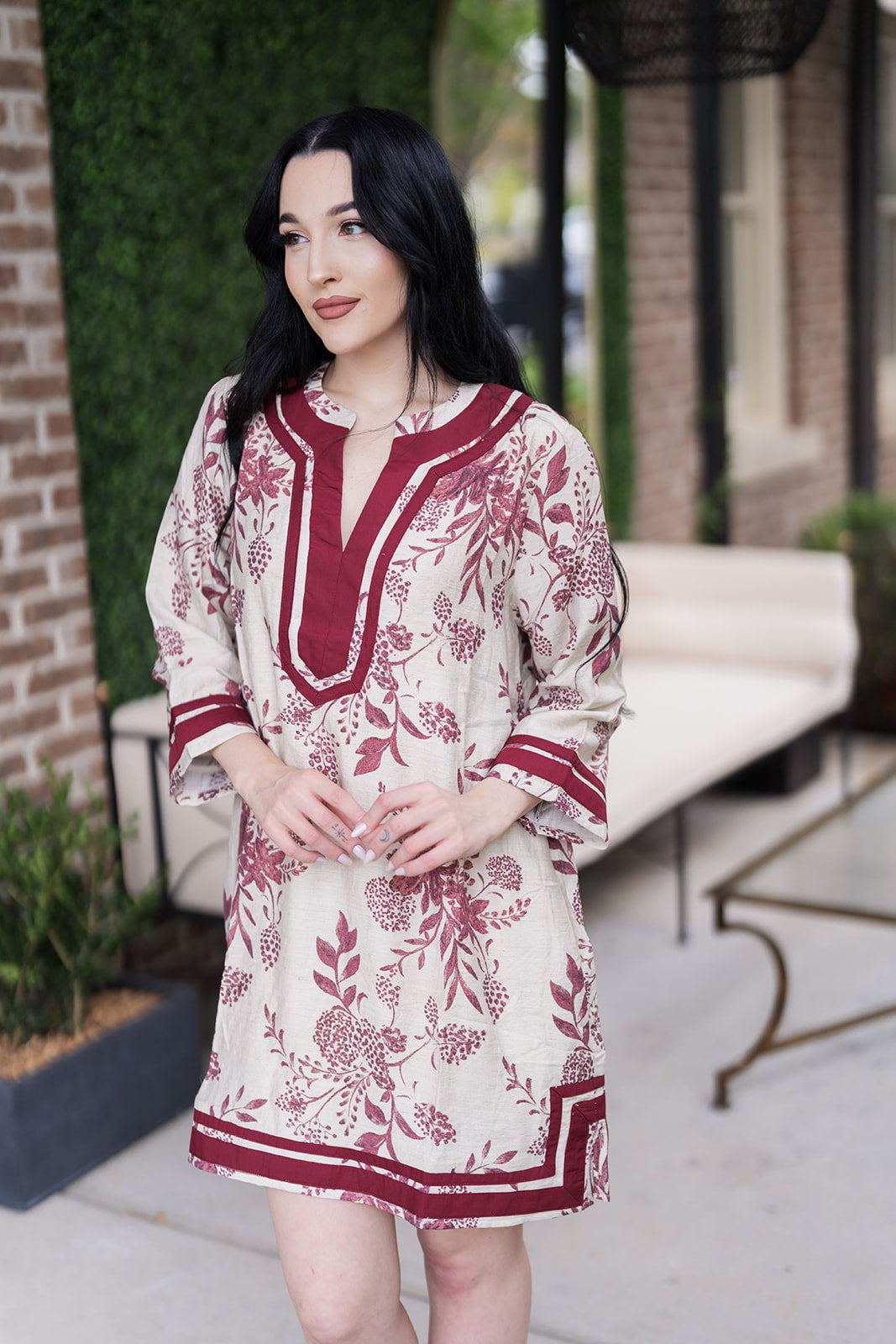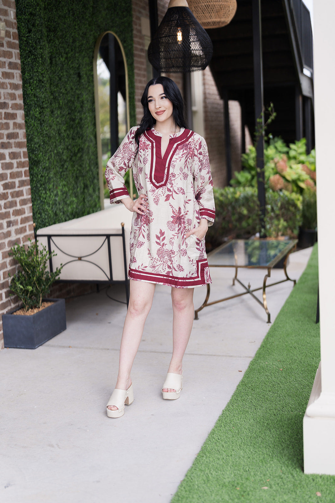 Slip into the Summer Afternoon Mini Dress and instantly elevate your warm-weather style. This dress is a testament to effortless beauty, featuring a timeless floral print that perfectly captures the relaxed, sun-drenched vibe of the season. The elegant design is brought to life with a contrasting band border on the neckline, sleeves, and hem, adding a touch of sophisticated detail that makes this piece truly special. This isn't just a dress; it's a feeling—the feeling of a perfect summer day, captured in fabric.