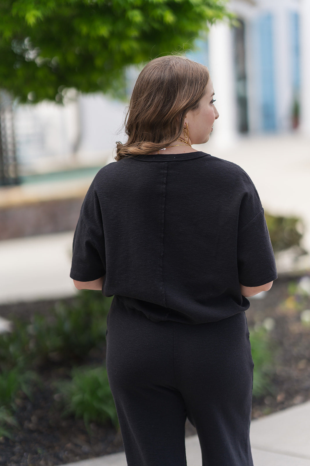 Coordinated Cool: Pair the After-Hours Pocket Tee with the matching high-waisted drawstring shorts (as pictured) for a sleek, monochromatic lounge set. Add white tube socks and chunky sneakers for an "it-girl" travel look.
