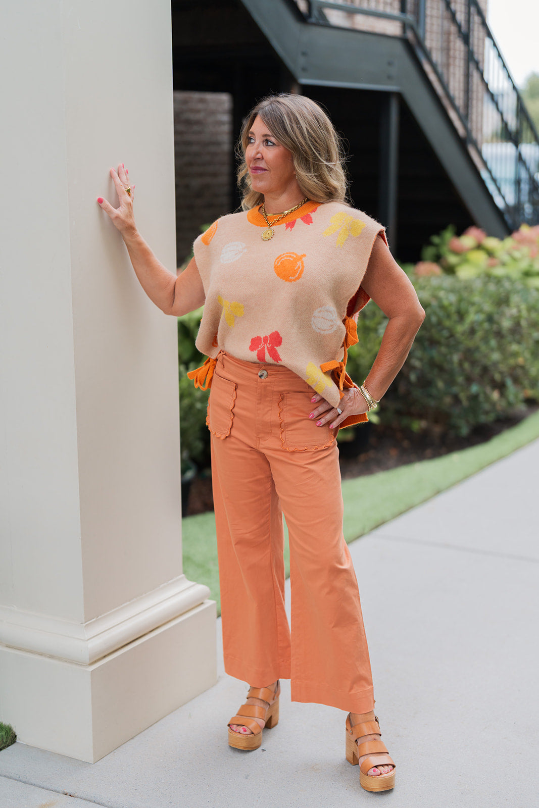 The Autumn Harvest Sweater is designed with a comfortable, relaxed fit and a classic crew neckline. The short sleeves make it the perfect transitional piece, allowing you to stay comfortable as the weather shifts. The intricate bow and turkey details are meticulously crafted, making this sweater a unique statement piece. This top effortlessly combines festive fun with a sophisticated knit design, making it a must-have for your fall wardrobe. Pair it with your favorite denim for a casual daytime look, or dress it up with a skirt and boots for a festive gathering. The versatility and undeniable cuteness of this sweater will have you reaching for it all season long.