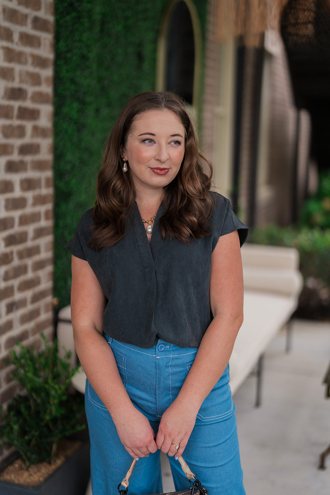 For a sharp office look, pair the top with tailored pants or a pencil skirt and classic pumps.
