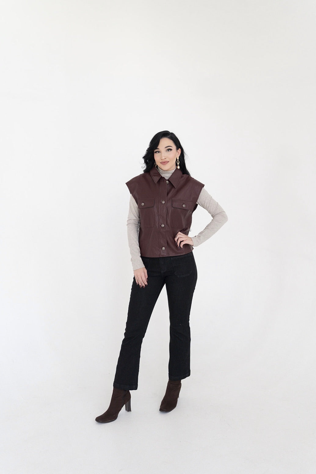 Step up your layering game and embrace the effortlessly cool vibe of the Smooth Operator Vest. This Faux Leather Vest is the ultimate transitional piece, blending the structured look of a jacket with the ease of a sleeveless top. It's the perfect way to incorporate a touch of modern edge and texture into any outfit without the bulk of a full coat.
