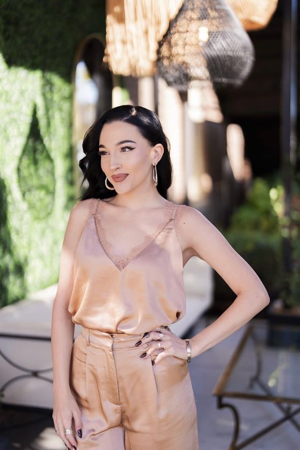 The Velvet Hour Cami is the epitome of versatile luxury. Its relaxed, flowing silhouette makes it a comfortable choice for all-day or evening wear. You can wear this camisole on its own as a stunning top, or layer it under the Gatsby Blazer for a complete, coordinated look that exudes powerful sophistication. The high-quality fabric and elegant detailing ensure this cami will be a cherished piece in your collection for seasons to come, providing effortless glamour and timeless style.