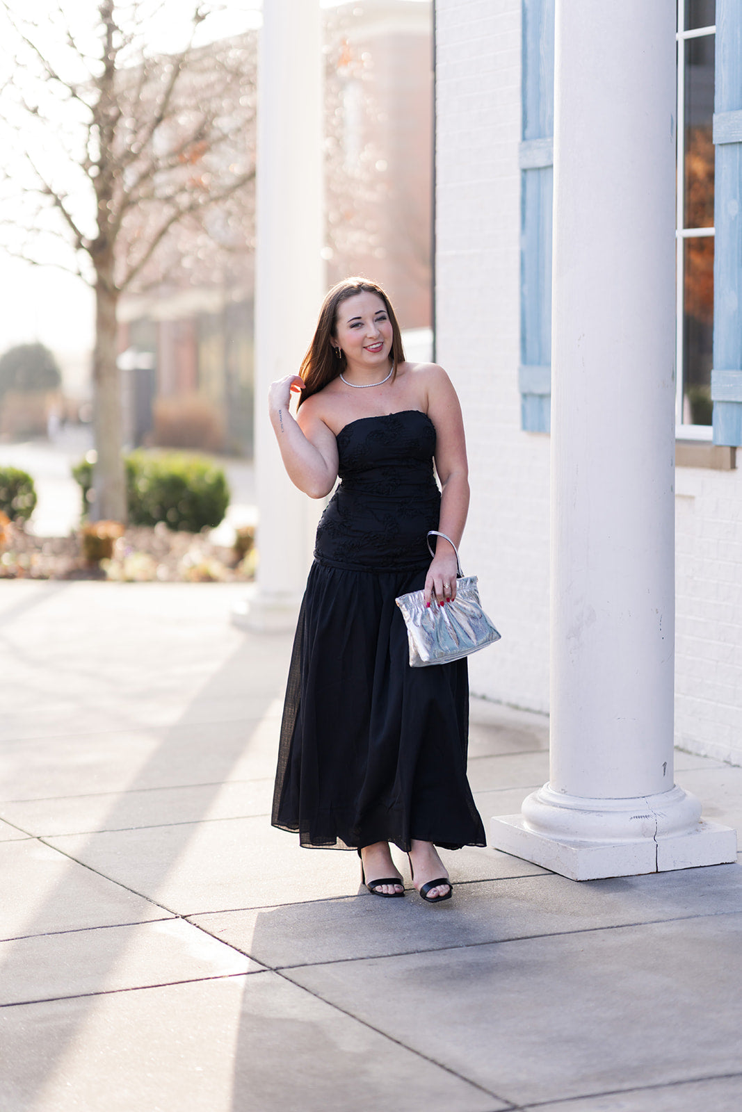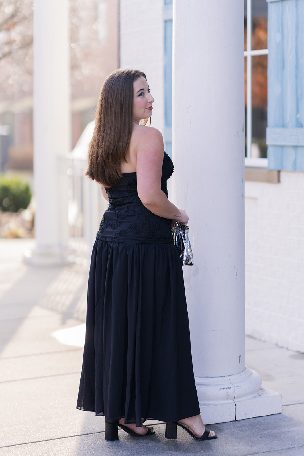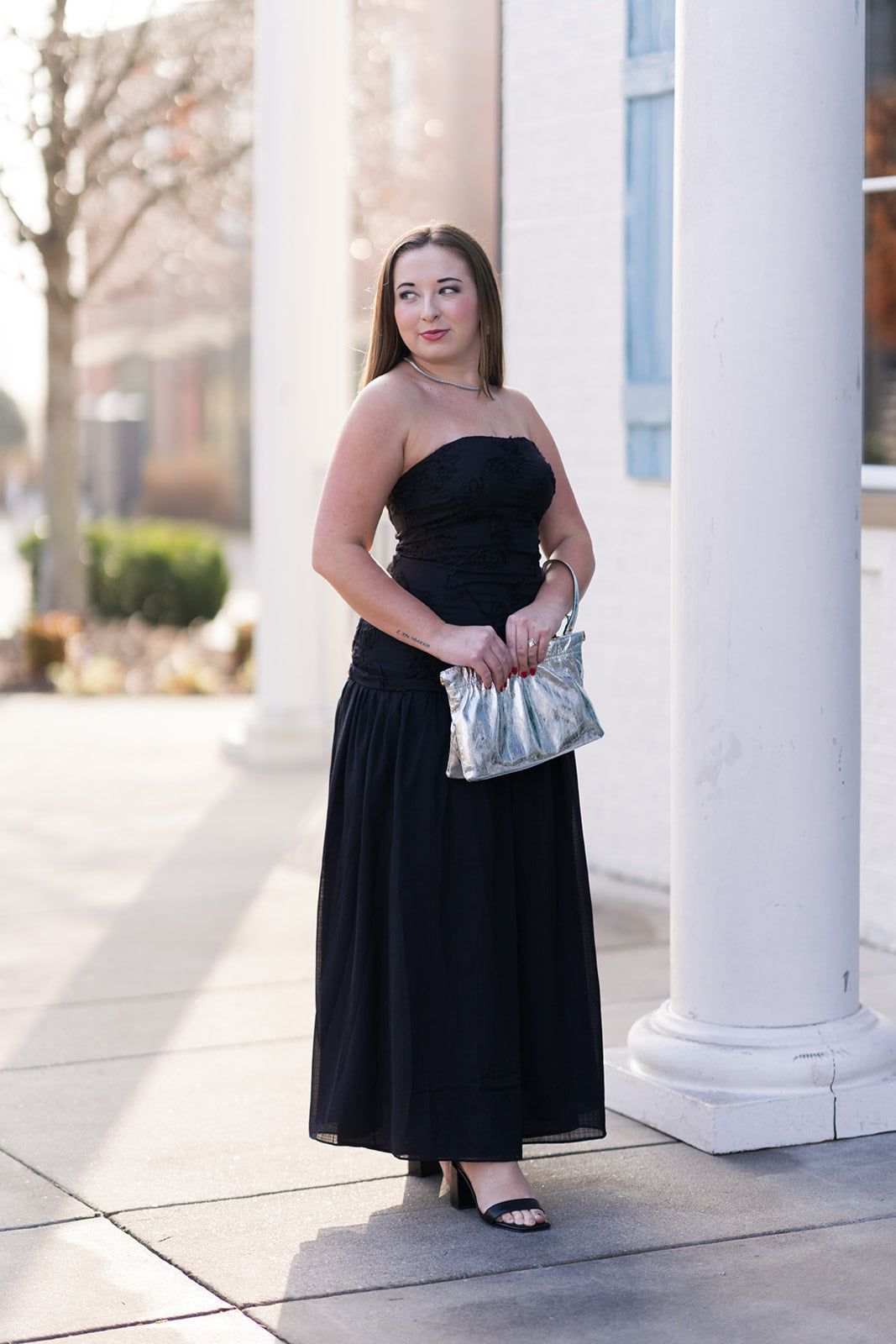 Pair with strappy high-heeled sandals and bold metallic jewelry (like large gold hoop earrings) for a classic, sophisticated evening appearance.