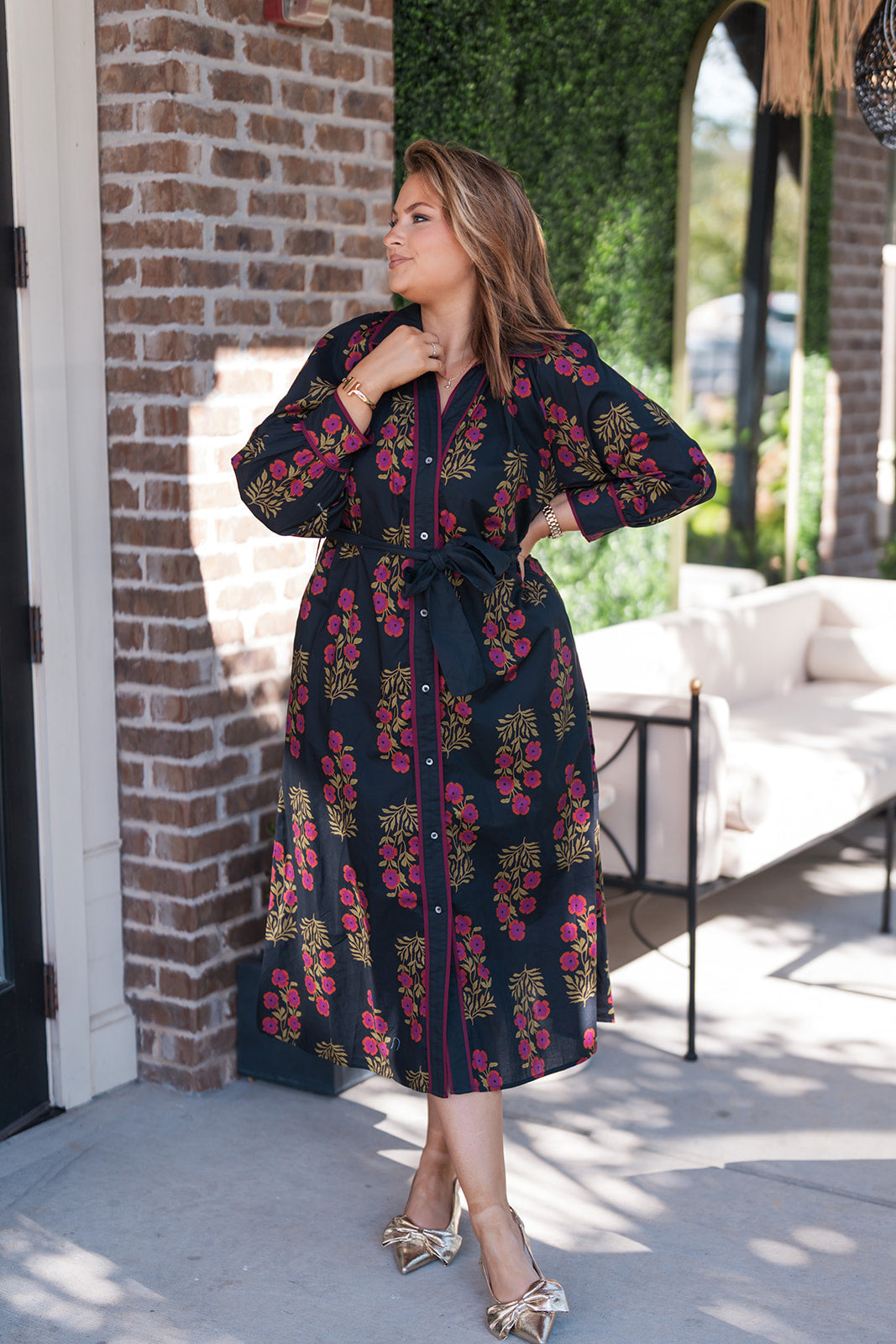 Silhouette: Flowing maxi shirt dress.