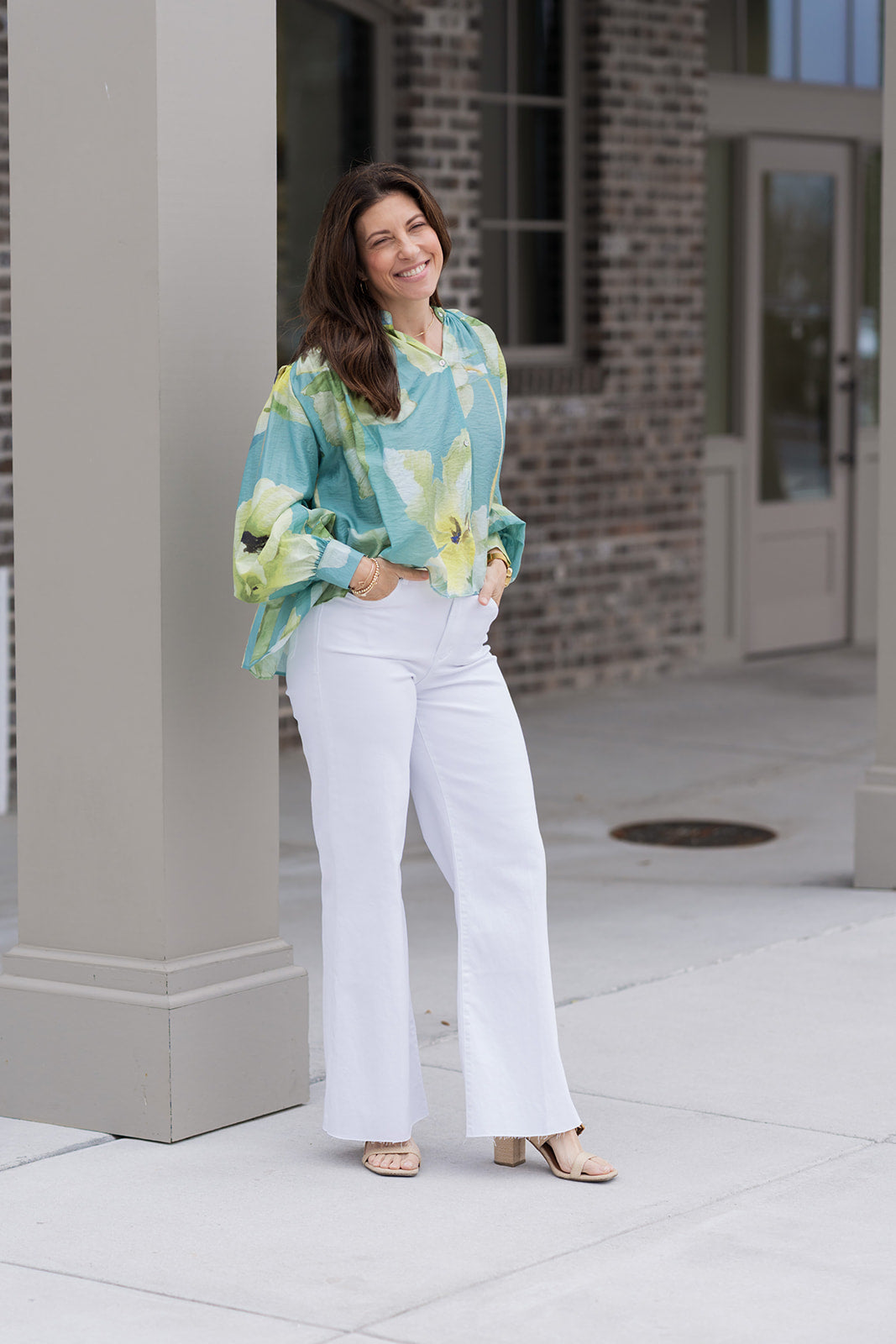 Coastal Chic: Pair the Painter’s Palette Blouse with our white tailored shorts and the Veranda View Sun Hat for an upscale boardwalk brunch.
