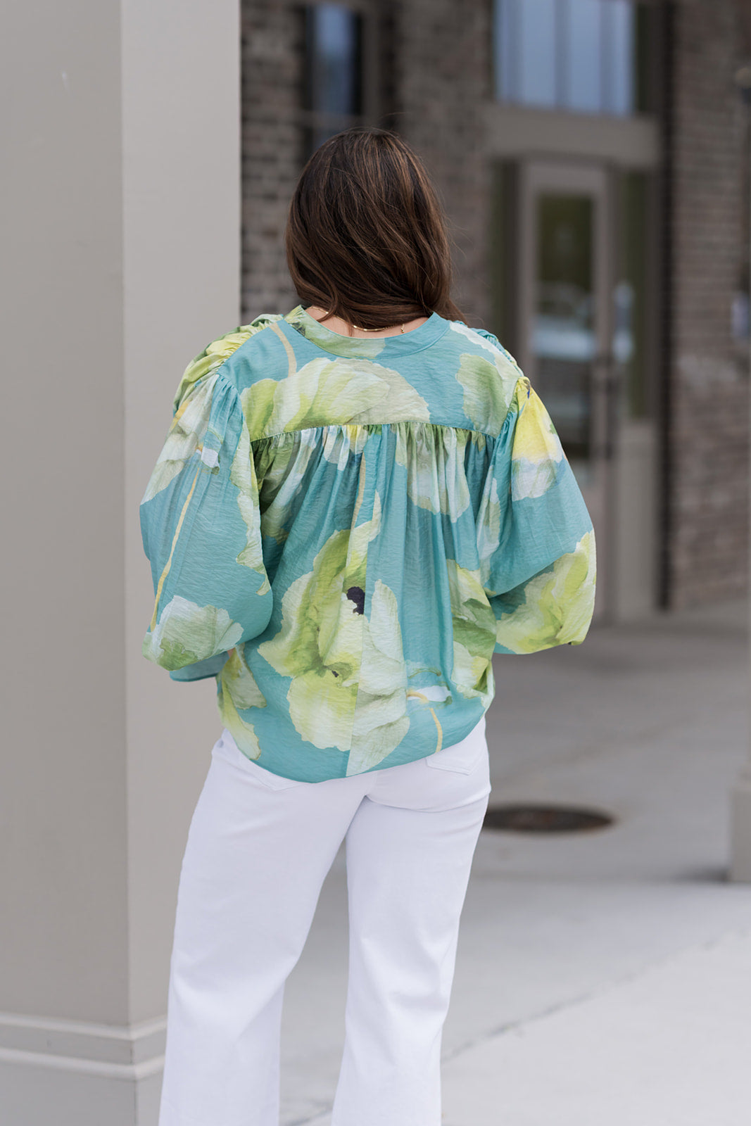 Artistry meets high-fashion with the Painter’s Palette Blouse, a breathtaking piece designed for the woman who views her wardrobe as a canvas. This top captures a romantic, ethereal aesthetic with its oversized, watercolor-inspired floral print in refreshing shades of seafoam green, lemon yellow, and soft cream. The luxurious, lightweight fabric has a subtle sheen that catches the light, making it a perfect transition piece from an upscale daytime social to an elegant sunset dinner.
