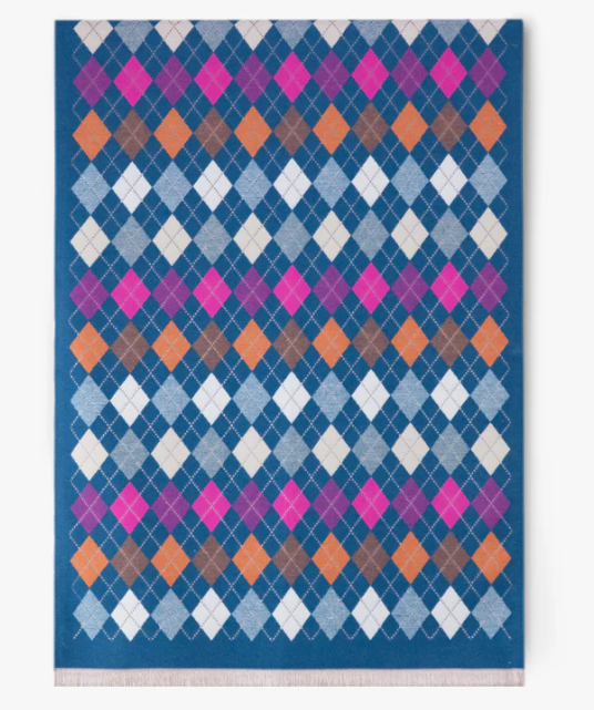 Classic Argyle Pattern: Features the iconic repeating diamond and overlay line motif in multiple contrasting colors.