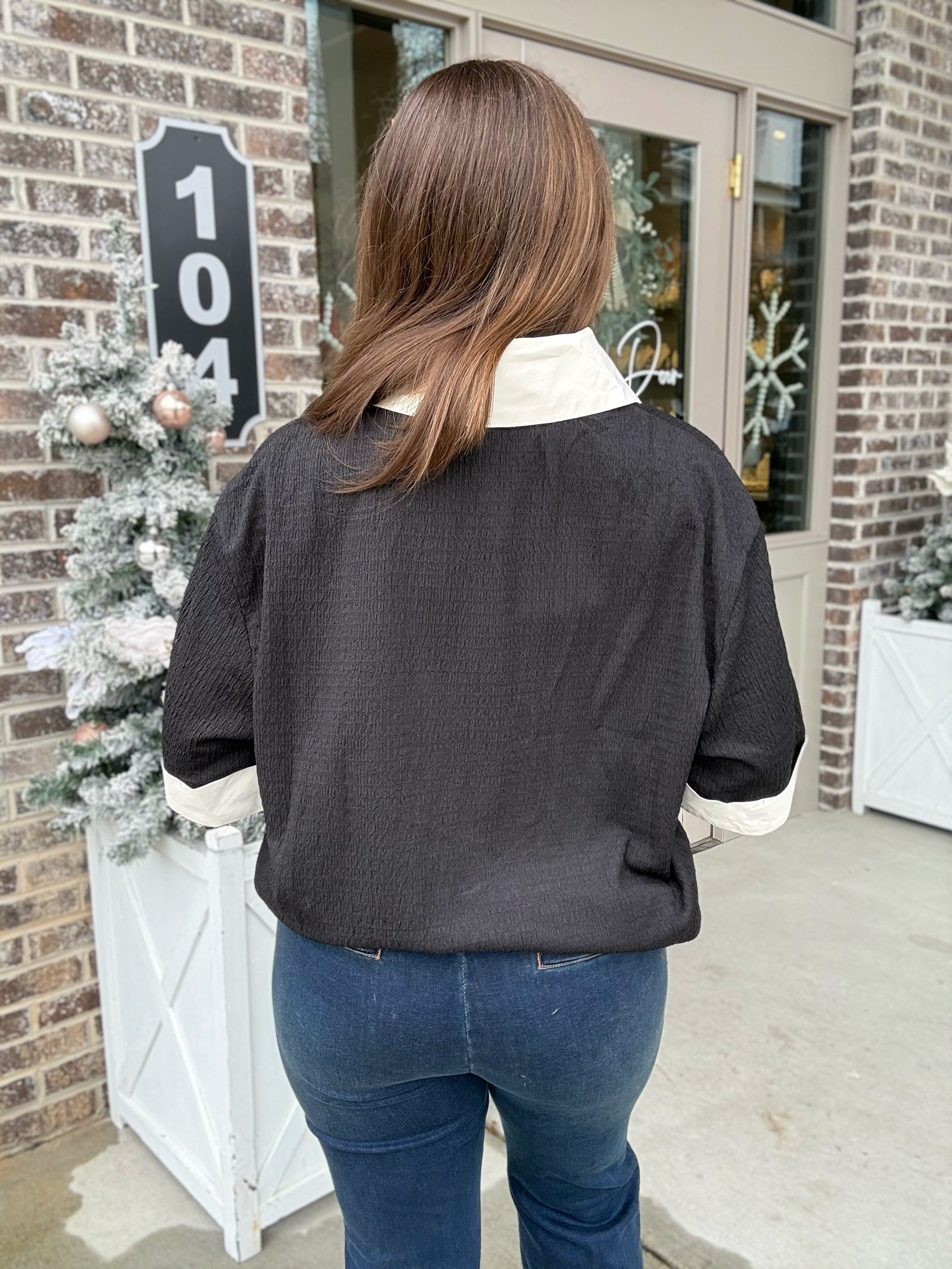 Embrace a sporty, preppy aesthetic with the Academy Stripe Tunic, a comfortable and versatile top that makes a bold statement. This unique short sleeve top is crafted from a soft, relaxed fabric in a primary Black color (with stripe details, though the original picture shows red/black). The relaxed, tunic-length fit makes it perfect for pairing with fitted bottoms.