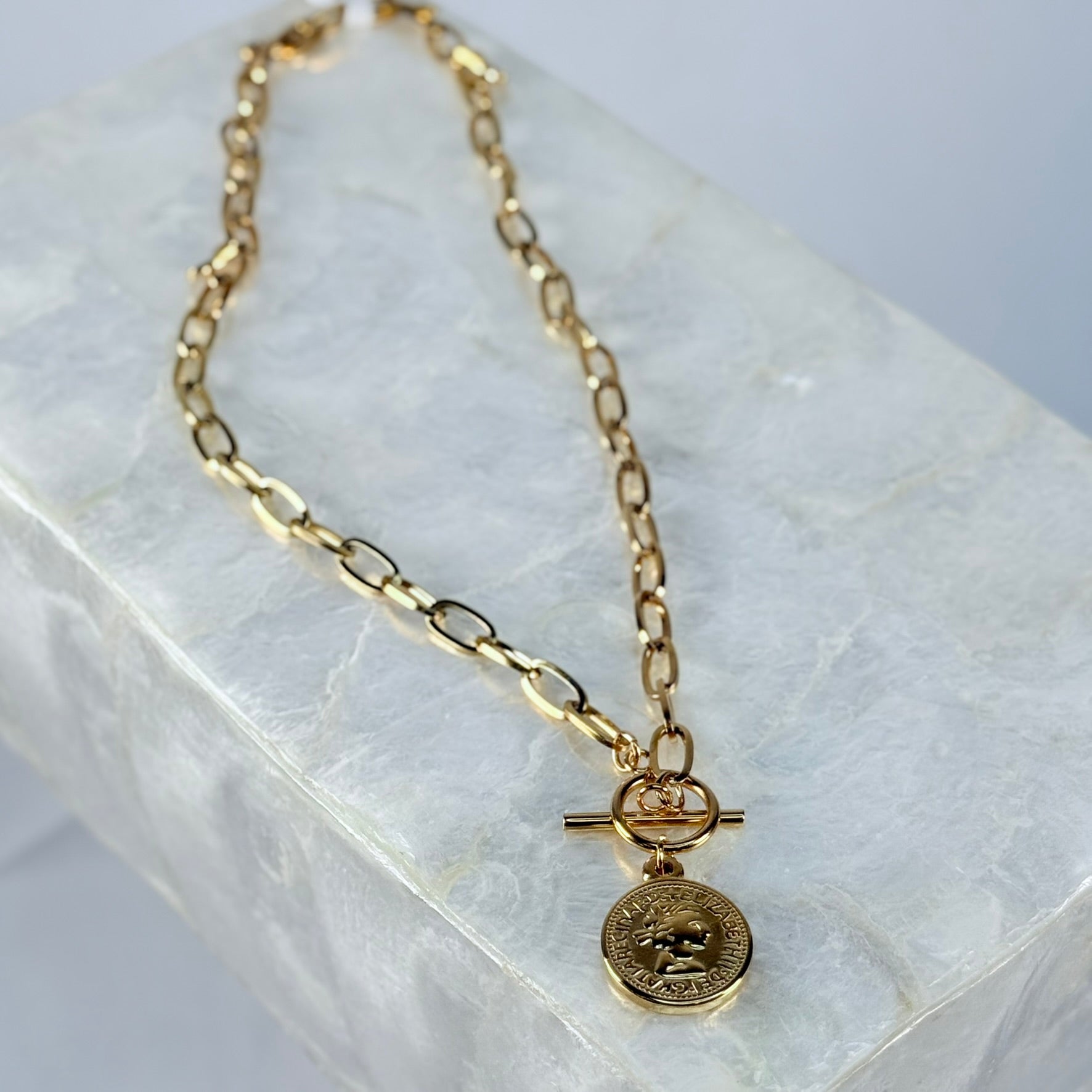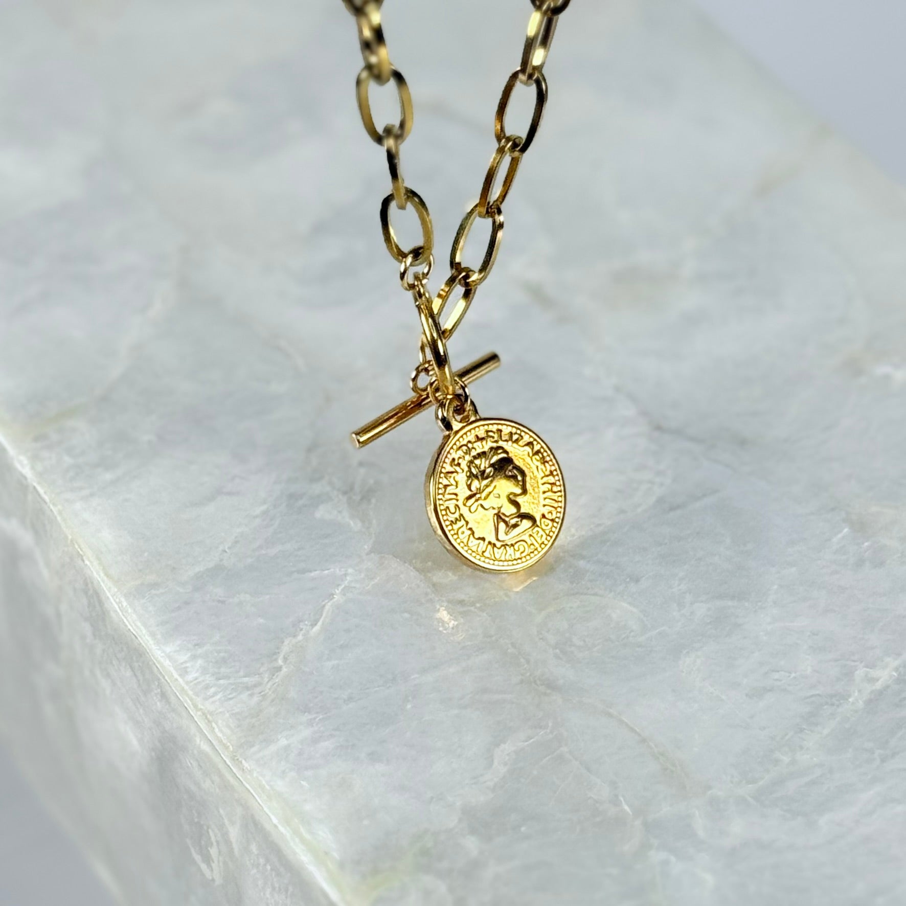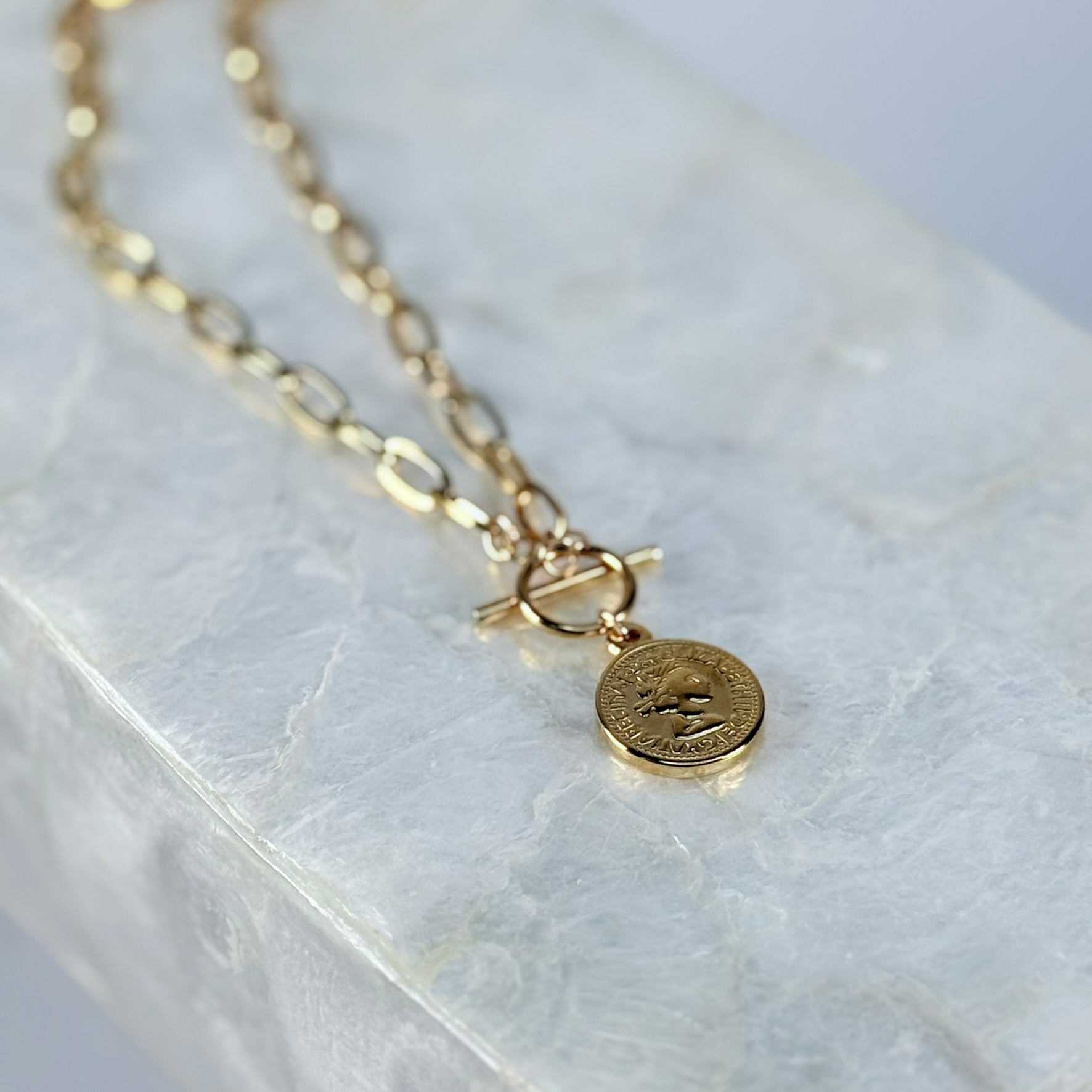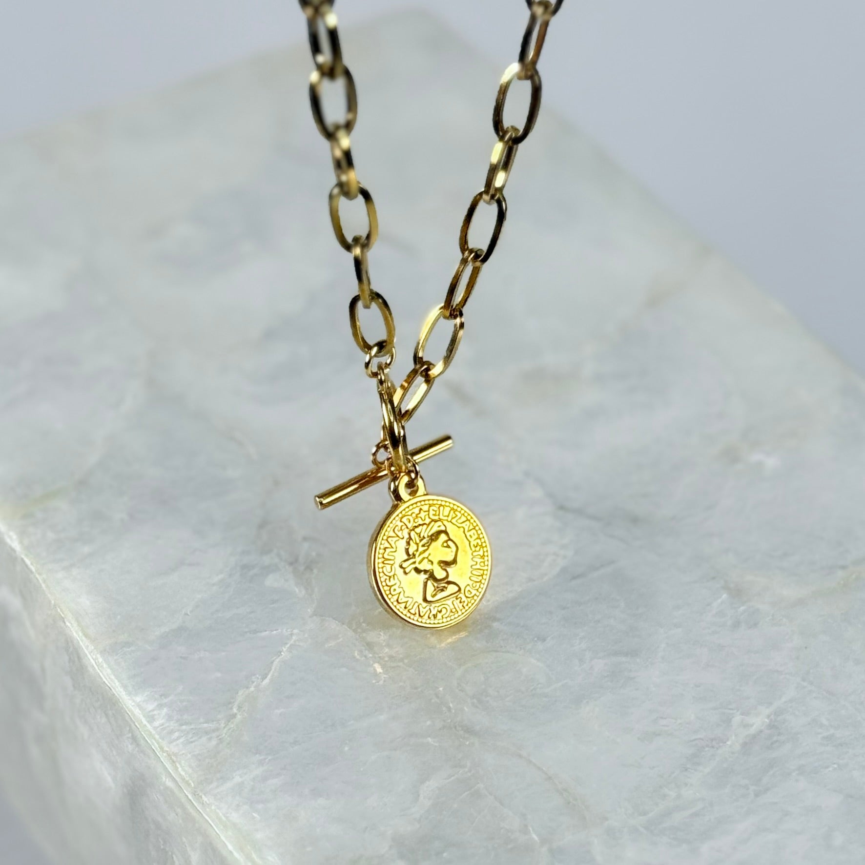 Elevate your style with this elegant Coin Necklace, designed to withstand everyday wear with its water-resistant finish. Perfect for adding a timeless touch to any outfit, it combines durability with classic charm, ensuring you look effortlessly polished wherever you go.