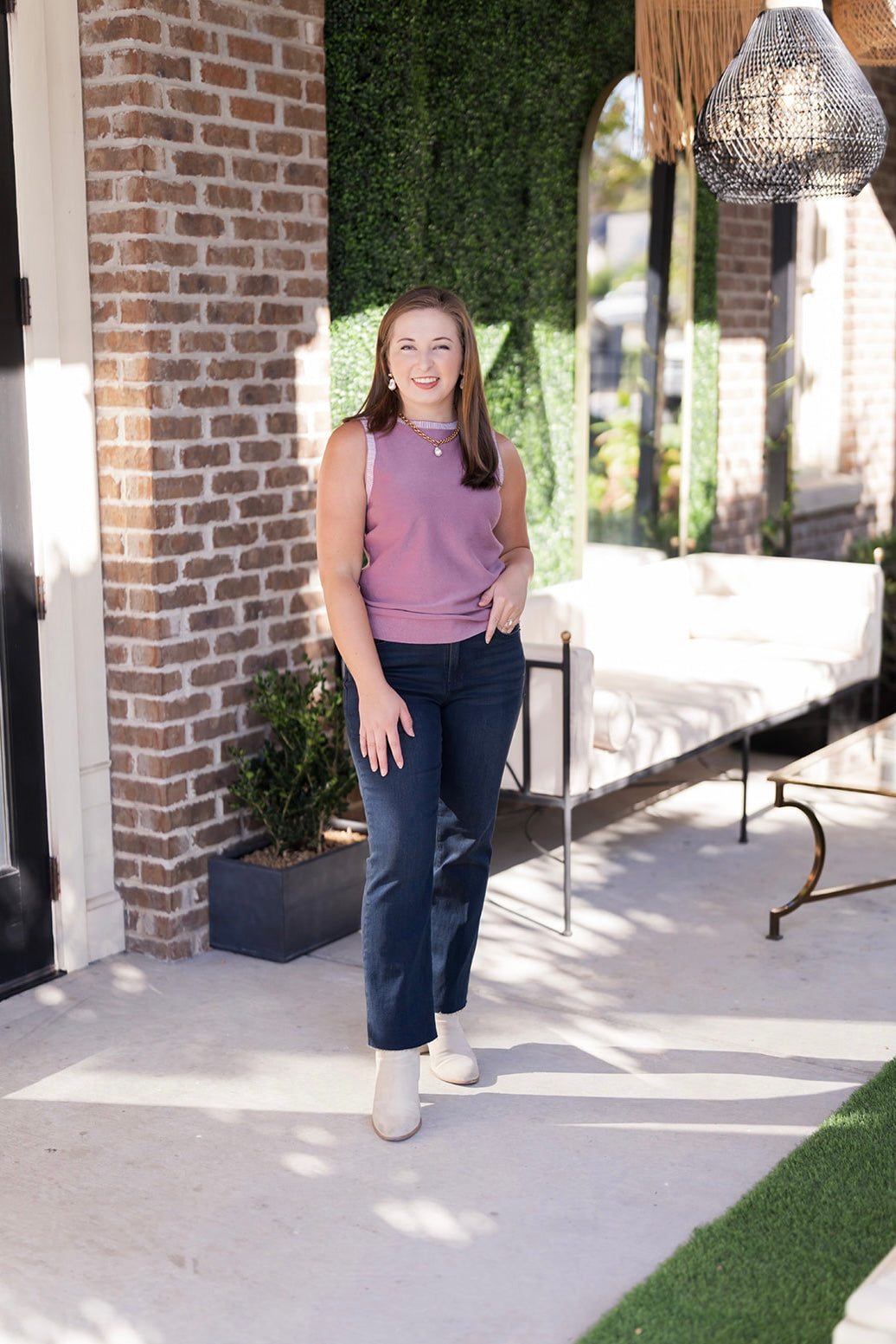 Achieve preppy perfection with The Courtside Knit Tank, a chic, athletic-inspired top that effortlessly transitions your style through the seasons. This women's top is crafted from a soft, fine-gauge knit, giving it a luxurious feel and a comfortable, flattering drape. Available in two versatile colors—a beautiful Dark Lavender or a warm Marsala—the silhouette is defined by bold, striped trim on the crewneck and armholes, adding a crisp, graphic detail that is both timeless and on-trend.