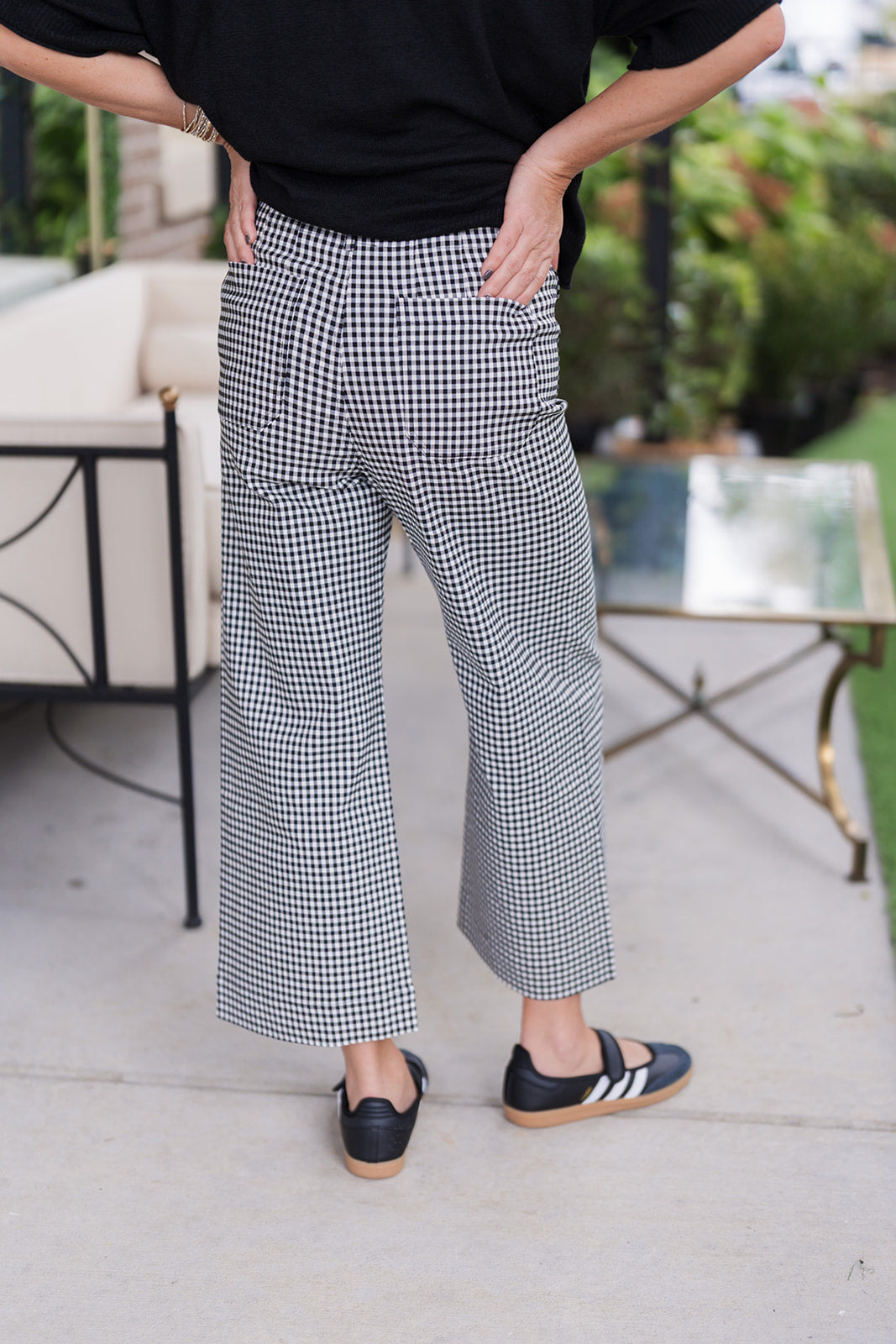 For a sweet and stylish daytime look, pair the Darling Gingham Pants with a simple solid-colored t-shirt or a fitted knit top. Tuck the shirt in to highlight the high-rise waist and add a pair of sneakers or loafers for a casual yet put-together vibe.