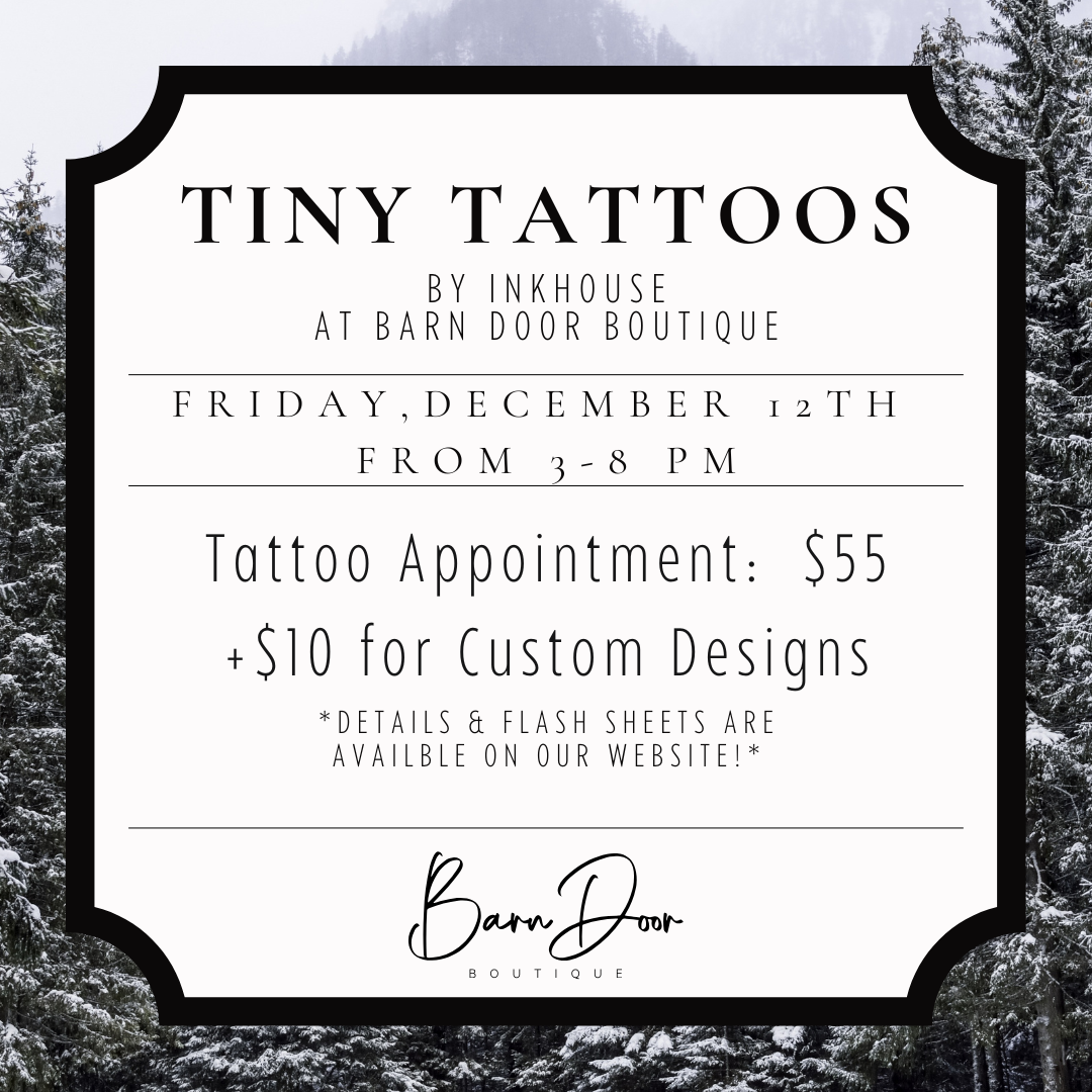 The $55.00 price covers a tiny tattoo from the provided flash sheet. Custom designs will have a $10 extra charge, which will be paid on the day of your appointment. Custom designs will also need to be pre-approved by InkHouse- for approval, send your designs to @inkhouse423 on Instagram!