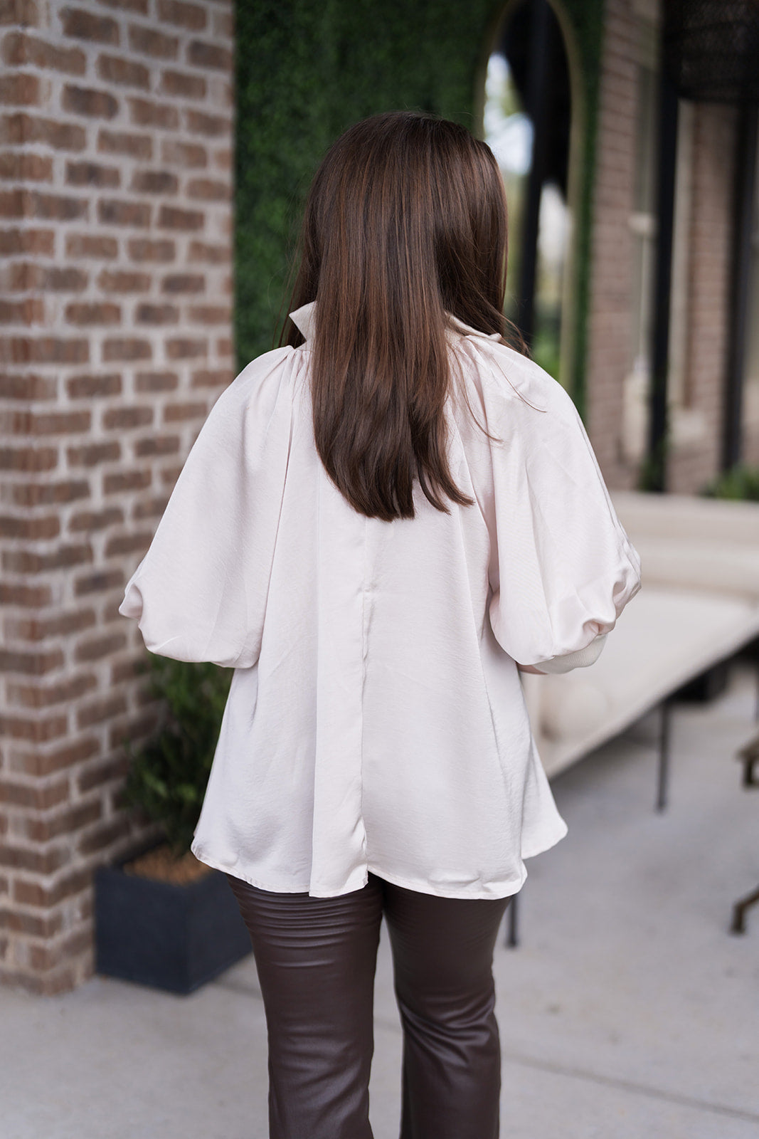 For a sophisticated work look, pair the Ivory Elegance Blouse with tailored trousers or a pencil skirt. Tuck it in for a clean, sharp silhouette. Add simple gold jewelry and a pair of classic heels to complete the ensemble.