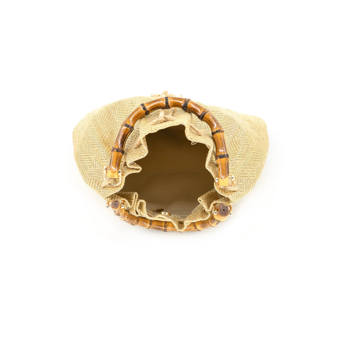 Hardware: Subtle gold-tone rings connecting the handle to the base.