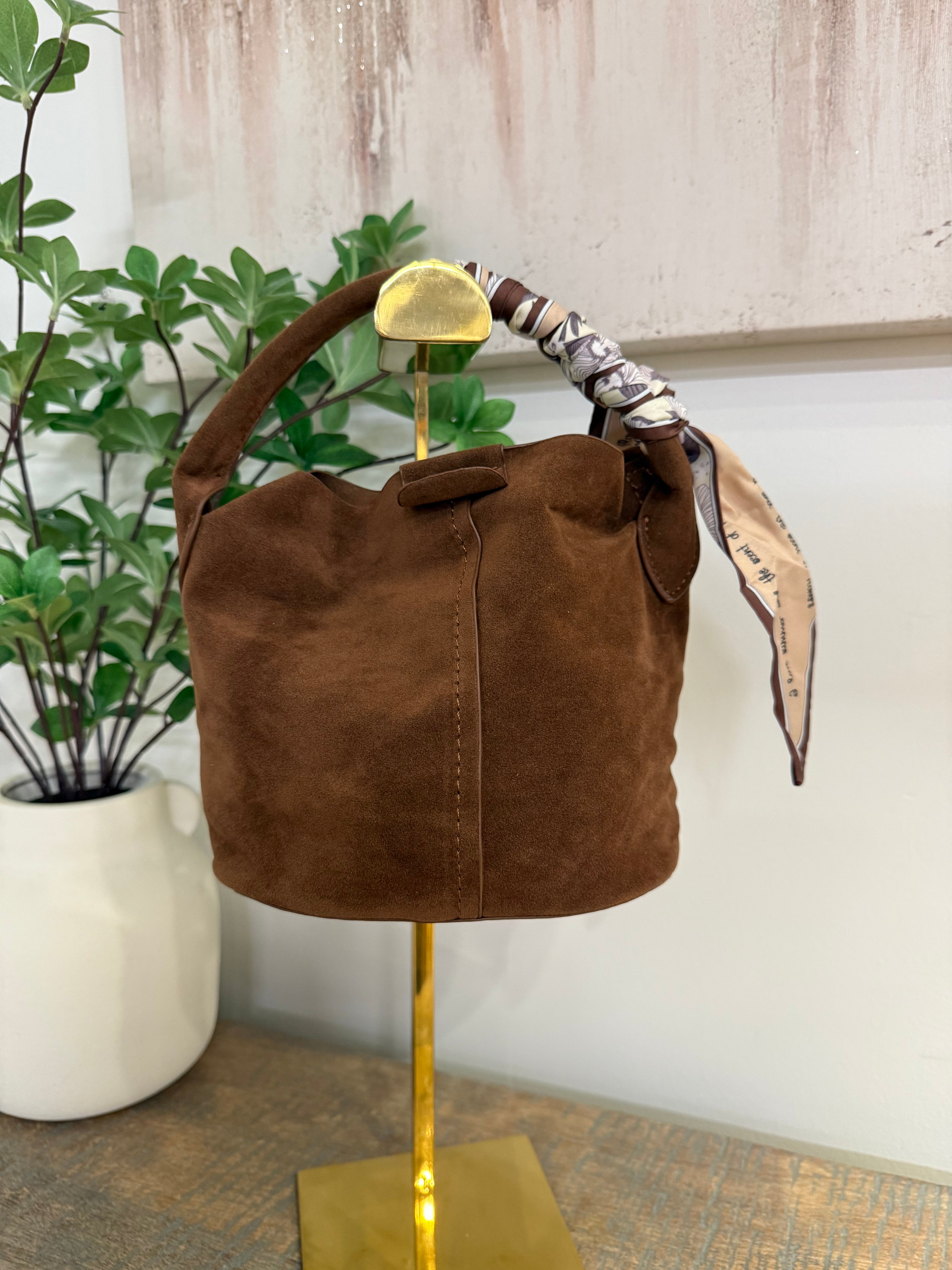 This Mini Suede World Traveller Bag combines chic style with practical design. Crafted from soft faux suede, it offers a luxurious feel without compromising on durability. The charming little scarf wrapped around the handle adds a unique, fashionable touch, making it perfect for elevating any outfit. Compact yet spacious enough for essentials, this mini handbag is ideal for those on the go who want to travel light without sacrificing style.