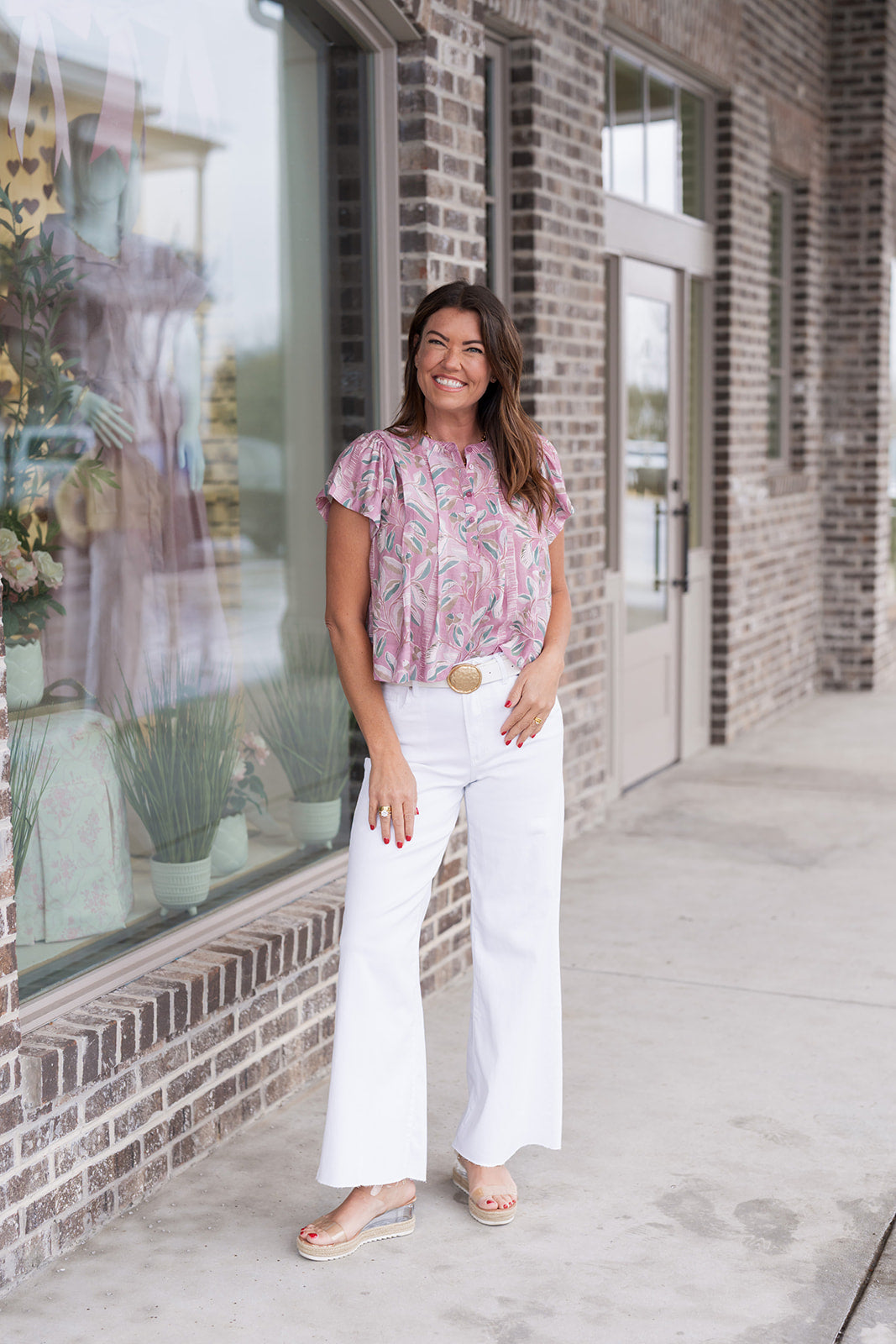 Inhale the fresh energy of the season with the Amethyst Air Blouse, a piece that perfectly balances artistic flair with everyday ease. This top is a masterclass in detail, featuring a dreamy, oversized leaf print in shades of lavender, sage, and cream that feels as light and refreshing as a spring breeze. Designed for the woman who loves a feminine touch without the fuss, its airy silhouette ensures you stay cool and comfortable whether you’re exploring a coastal town or heading to a busy weekday lunch. The soft purple hue adds a sophisticated pop of color to your wardrobe, making it a standout staple for your warm-weather rotation.