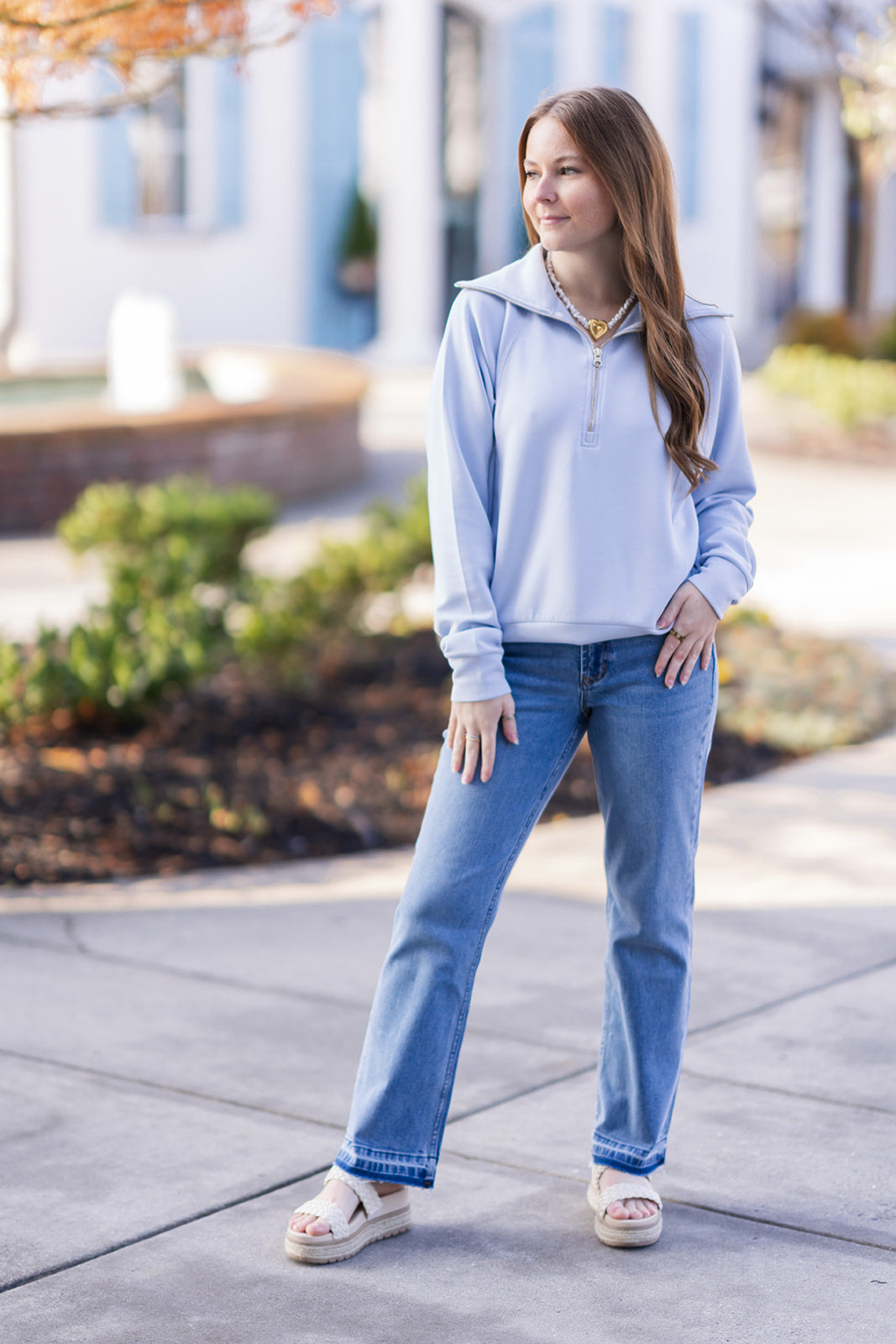 Effortlessly elevated and endlessly comfortable—the Cloud Nine Half-Zip is crafted from our signature sand-washed scuba fabric with a buttery-soft, spongy hand feel. Designed with a relaxed drop-shoulder silhouette, gold half-zip closure, and elastic cuffs and hem for a modern, structured fit. The perfect blend of polish and ease for any day of the week.