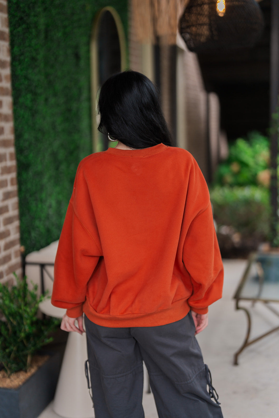 The oversized, relaxed fit is perfect for layering over a team tee or wearing on its own for a laid-back look. You'll love the classic details, like the crew neckline with a V-stitch detail, which gives it a vintage, athletic feel. The ribbed cuffs and hem not only add a touch of classic style but also ensure a snug fit that keeps the cold out. Whether you’re cheering from the bleachers, hosting a watch party at home, or running errands on a Saturday morning, this sweatshirt is the perfect way to show your team pride. Its timeless design and superior comfort will make it a staple in your gameday rotation for years to come.