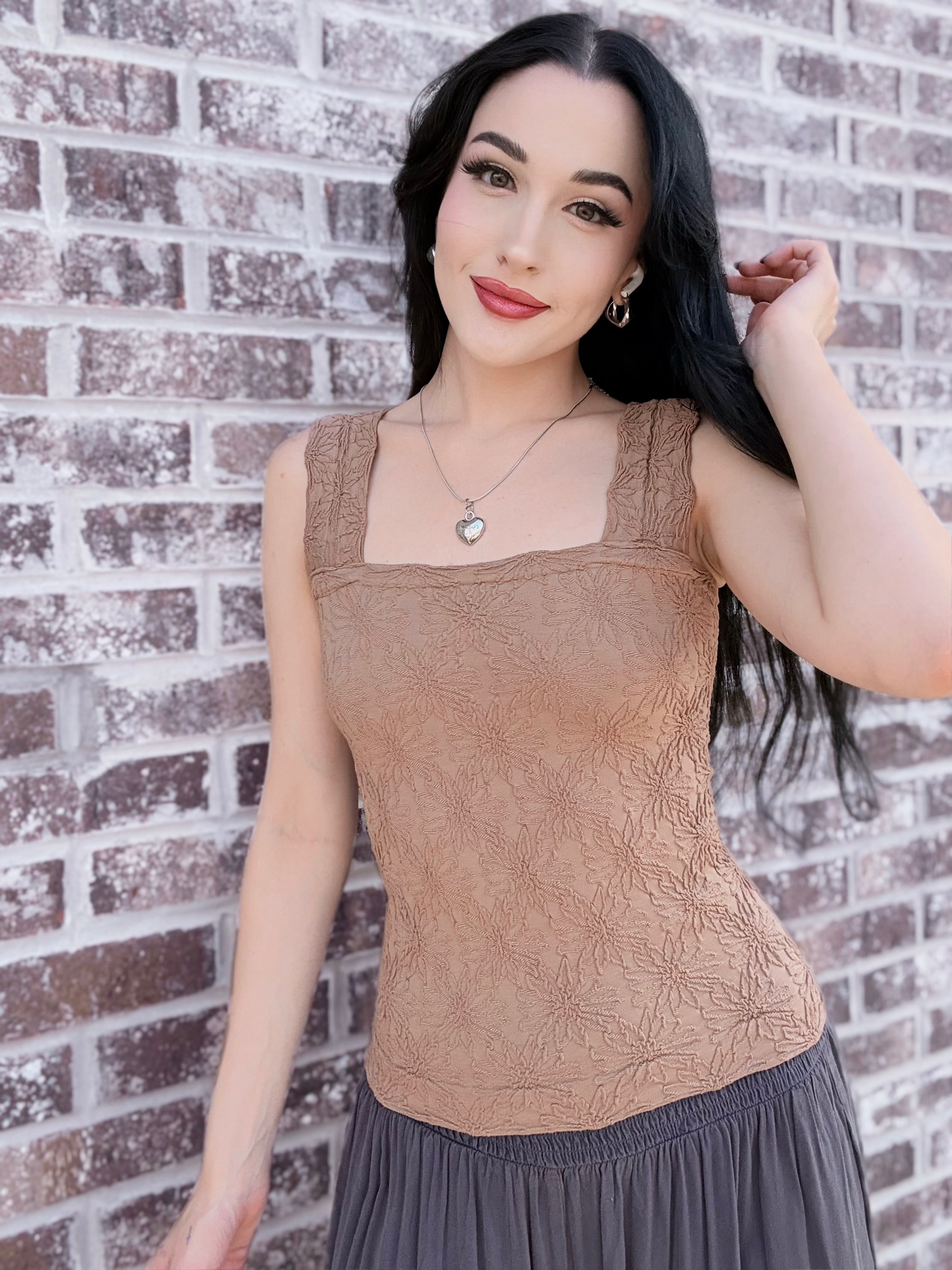 Unique Dimensional Texture: The all-over textured daisy pattern provides a rich, tactile element that elevates this cami beyond a basic knit.