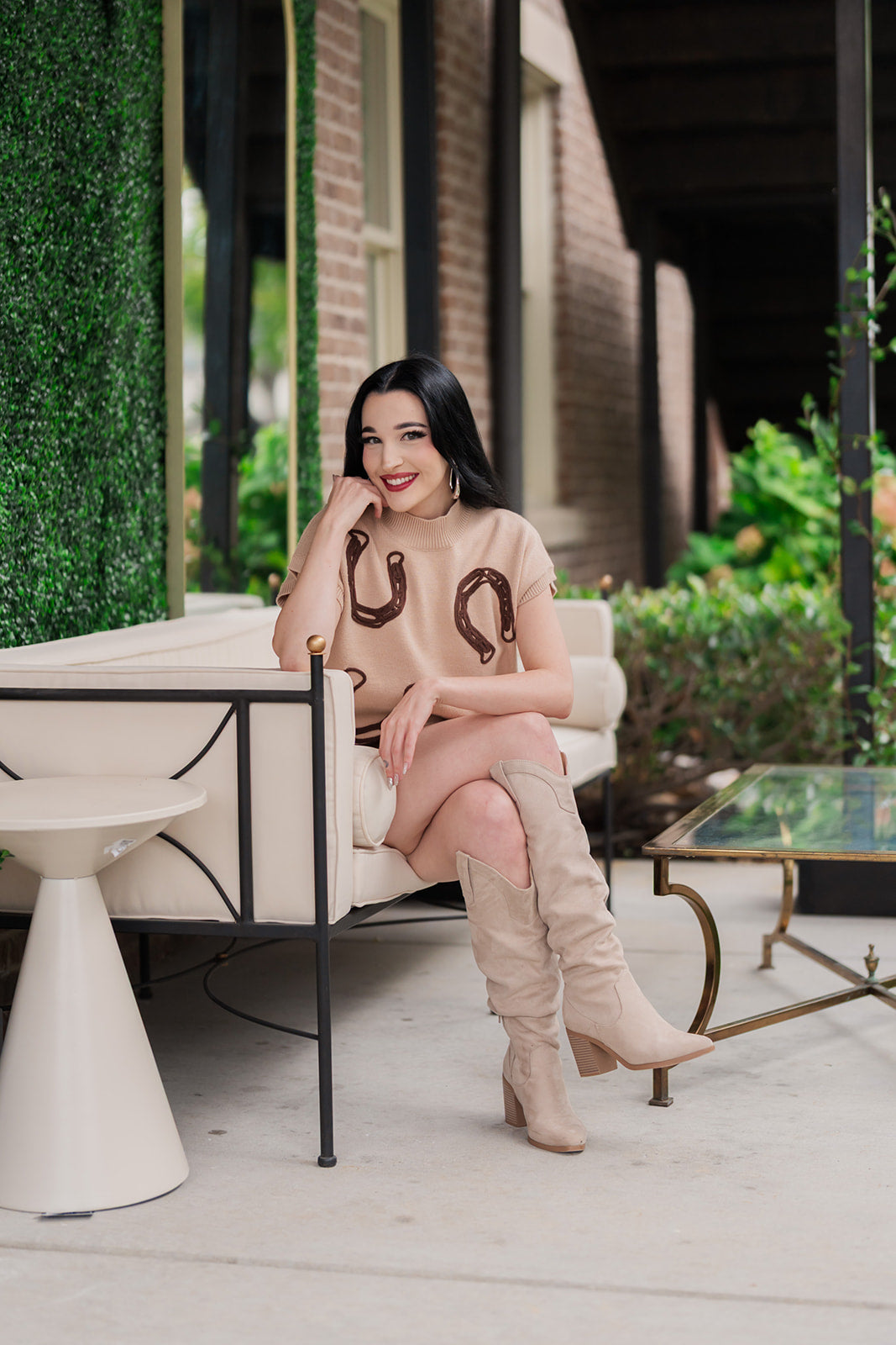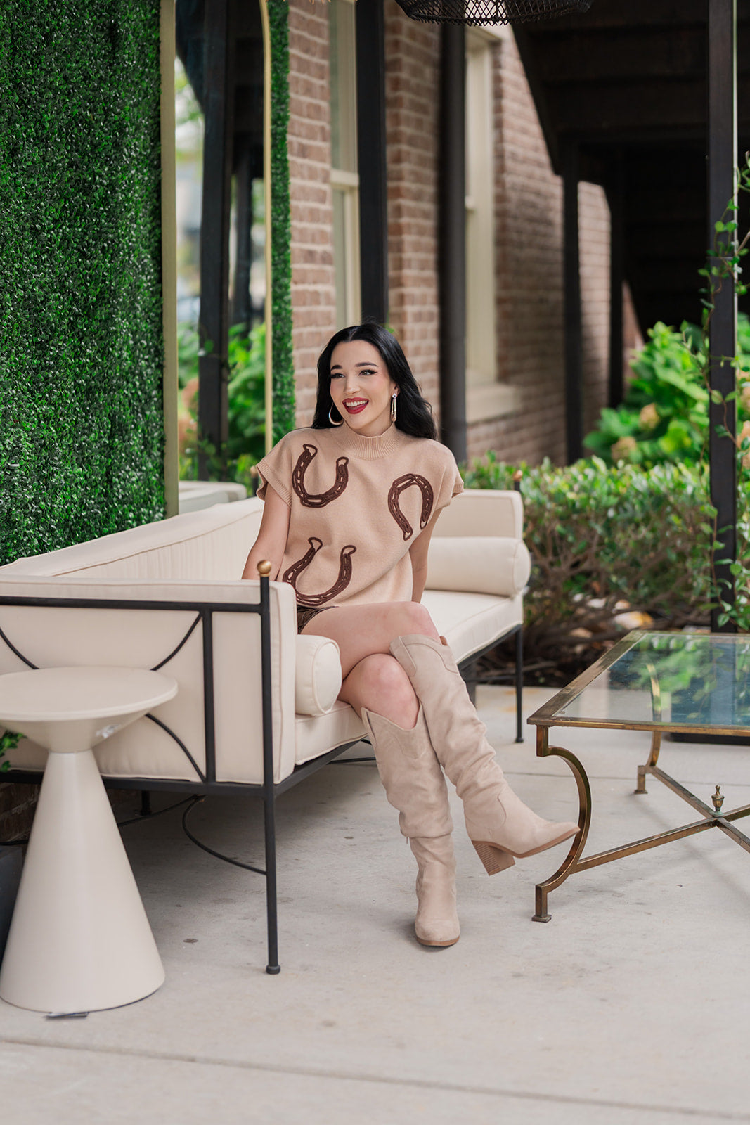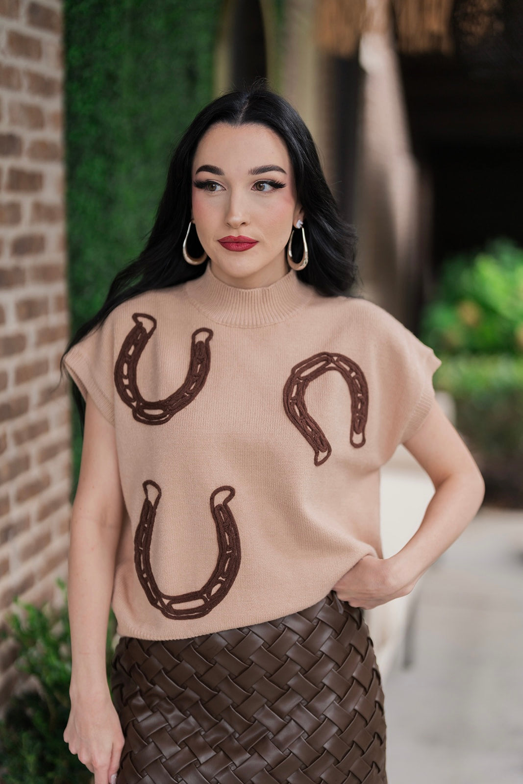 Whether you're headed to a weekend brunch, a casual get-together, or simply want to feel cozy and chic on a crisp day, the Gilded Horseshoe Sweater is your go-to. Its unique details and classic design make it a versatile piece you'll reach for again and again.