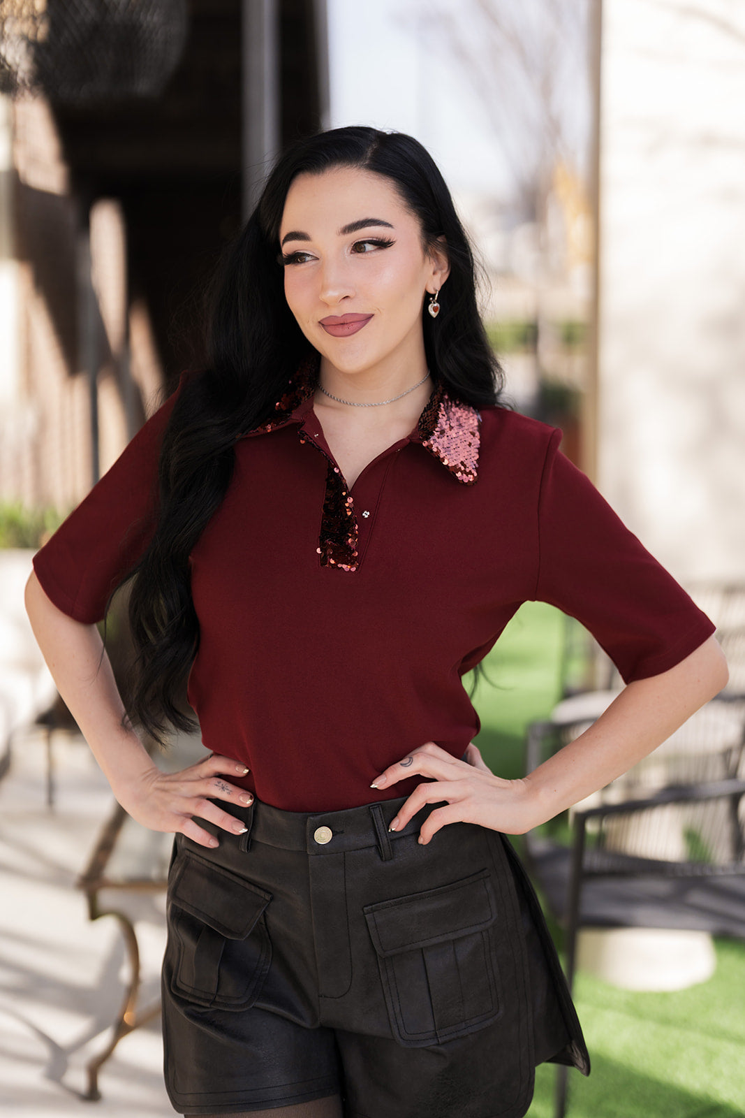 Elevate your wardrobe with this stunning Merlot Collared Top, where timeless sophistication meets eye-catching glamour. The rich burgundy hue pairs perfectly with shimmering sequins that catch the light with every movement, creating an effortlessly chic look for any occasion. Quarter sleeves offer a flattering, versatile fit that transitions seamlessly from day to evening wear. Whether you're heading to a special event or want to add sparkle to your everyday style, this polished piece delivers the perfect balance of elegance and allure.