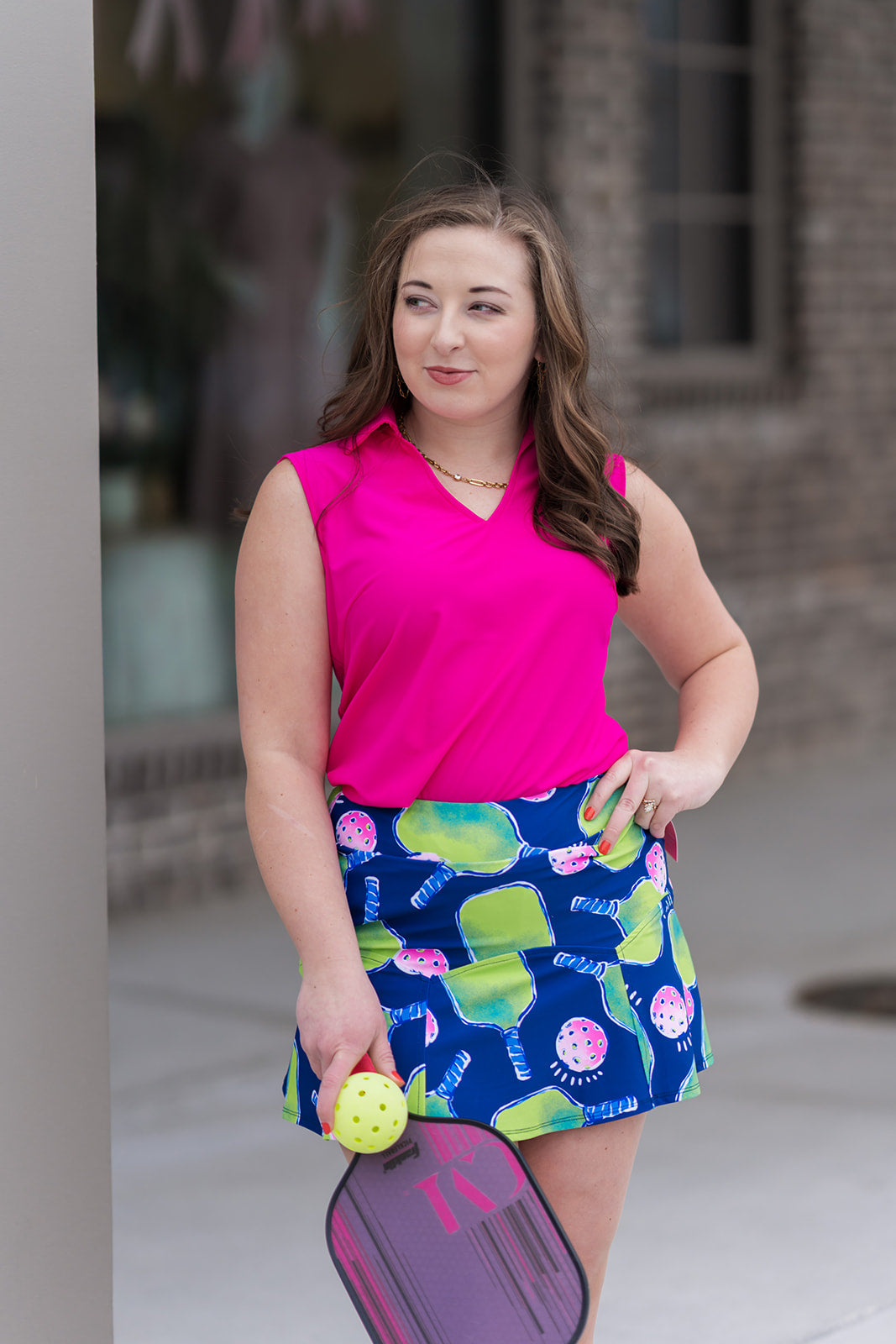 For a coordinated court-side look, pair the Pink Punch Polo with our Pickleball Pro Skort. The pink accents in the skort's print will tie perfectly with the top for a cohesive, high-energy athletic ensemble.
