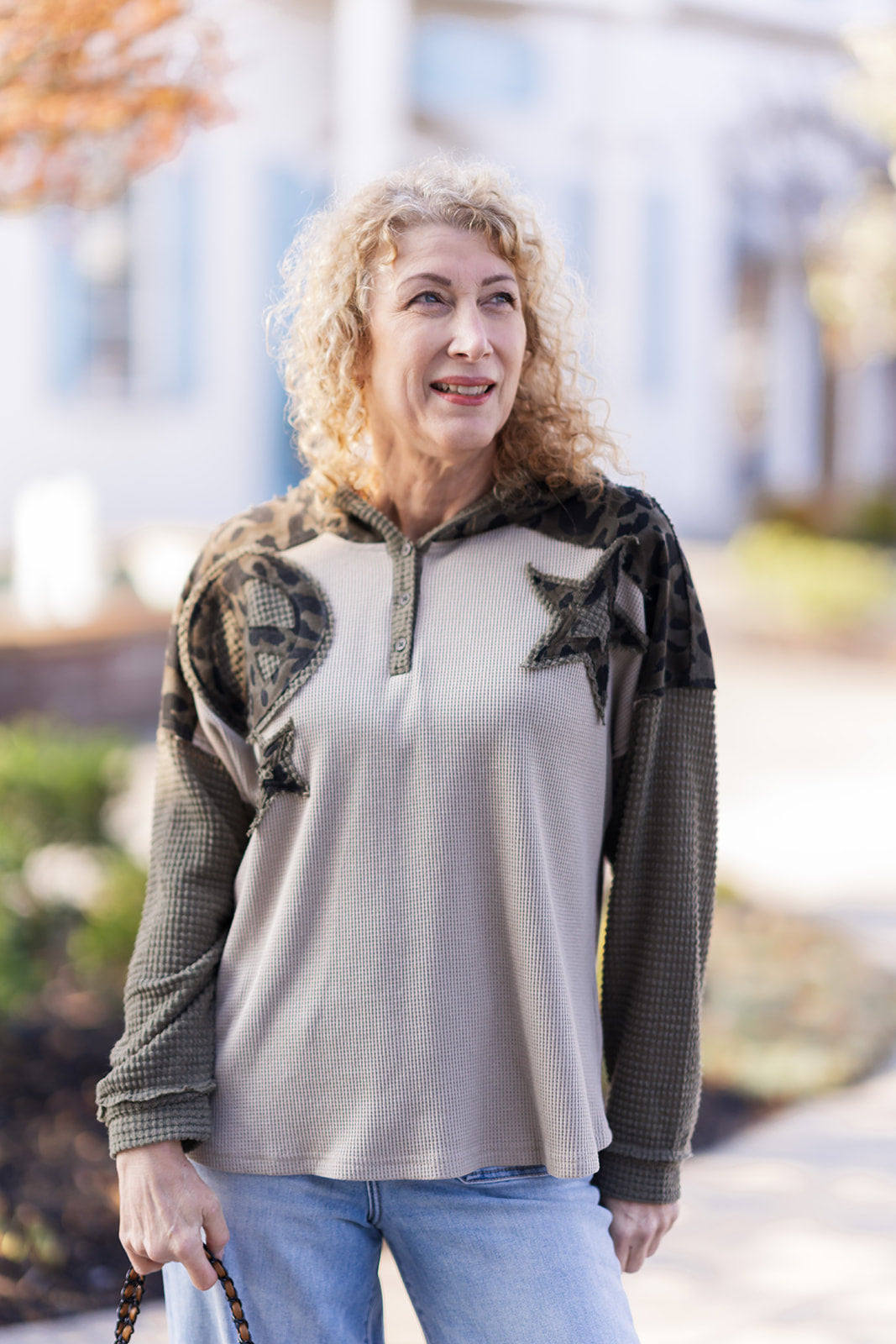 The centerpiece of this design is the intricate star and peace symbol patchwork, which adds a tactile, artisanal touch to the classic hoodie silhouette. With a focus on a relaxed, laid-back fit, the Stardust Peace Pullover offers ultimate comfort without sacrificing style. The dropped shoulders and generous hood provide a cozy, protective feel, making it the perfect companion for sunset beach walks, weekend farmer's market runs, or elevated lounging at home. Whether you are looking for a reliable boutique essential or a unique gift, this pullover captures a sense of effortless cool that feels both nostalgic and perfectly current.