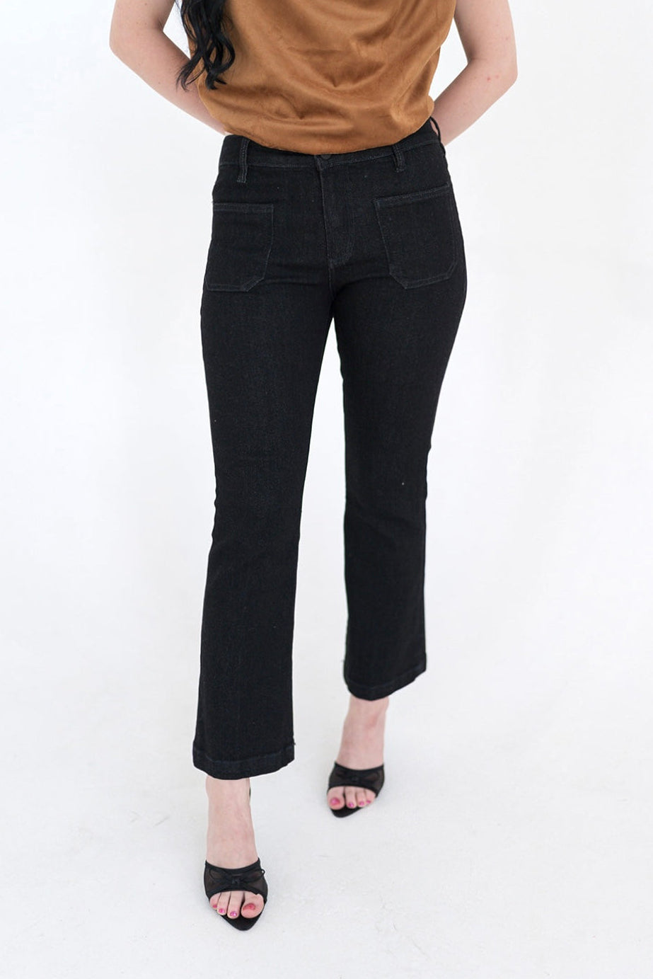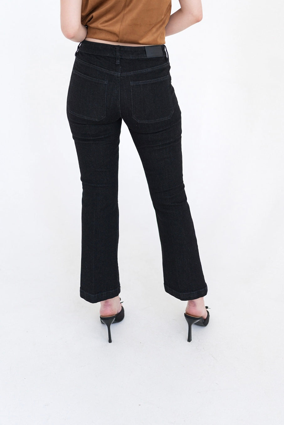 The Dear John Black Jeanne is designed for effortless style and all-day comfort. The tailored fit through the hip and thigh, combined with the gentle flare below the knee, creates a balanced and flattering shape. The cropped length is perfect for showcasing your favorite footwear, from ankle boots to sleek heels. These trousers are an essential for creating polished looks, whether for the office or an elevated casual outing.