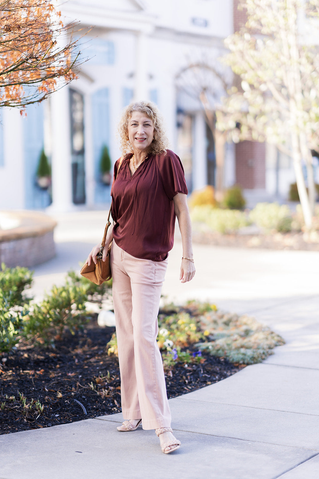 Earthy Elegance: Pair the Aria Gathered Blouse with a structured suede midi skirt in a chocolate or tan tone (as pictured) to create a beautiful play on textures. Add pointed-toe heels for a sophisticated, editorial-ready look.