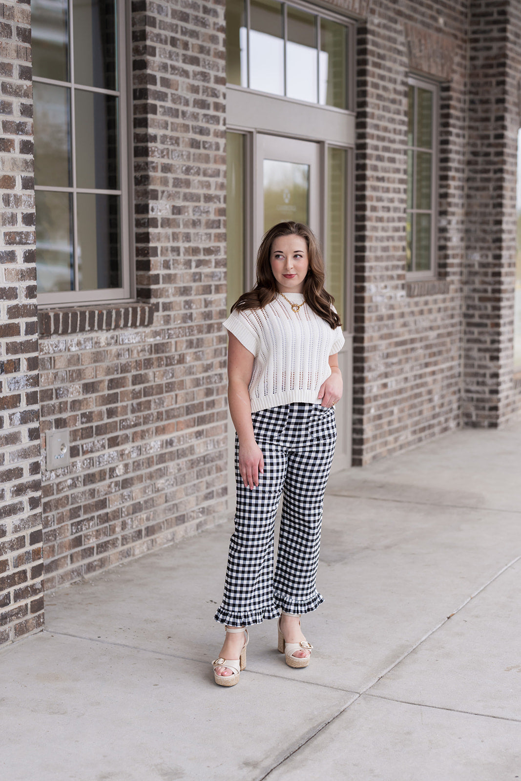 Vintage-Inspired Charm: The combination of gingham and ruffles creates a unique, boutique-style look that stands out from basic trousers.