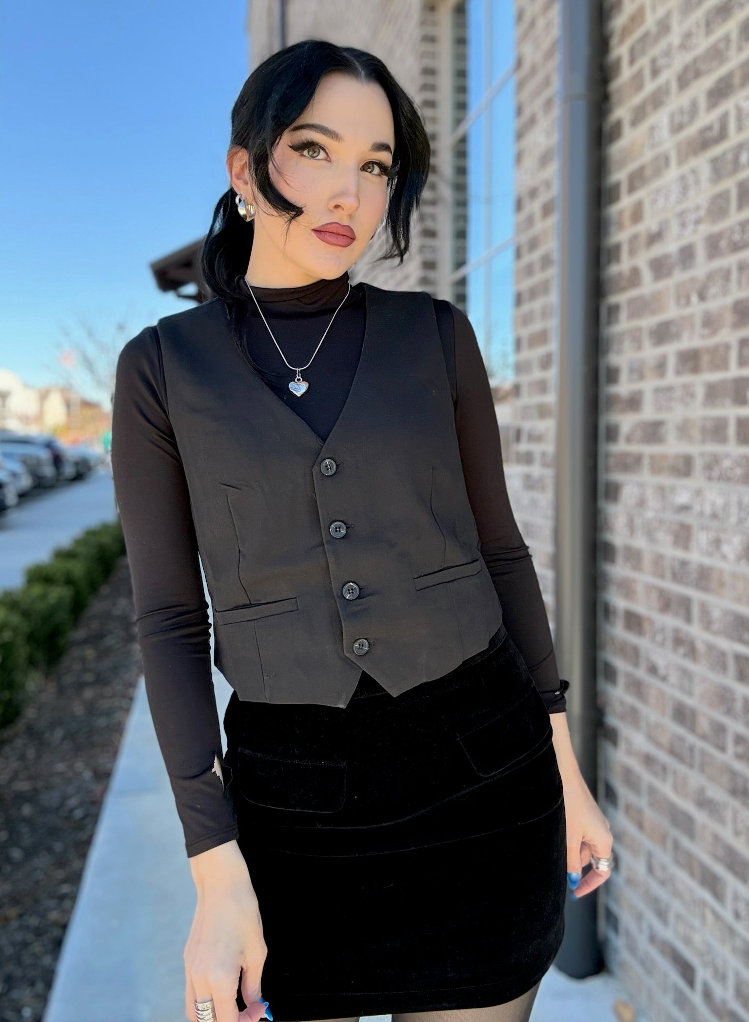 The Cropped Curator Vest is the ultimate layering essential to elevate your look.