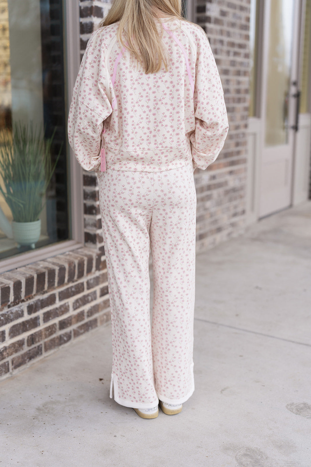 For the ultimate "Pinterest-perfect" look, pair the Petite Petal Pants with the matching Petite Petal Pullover. To lean into the "clean girl" aesthetic, add a pair of sleek white leather sneakers and a high, slicked-back ponytail tied with a matching pink bow. This full set is the dream outfit for a long flight or a weekend road trip.