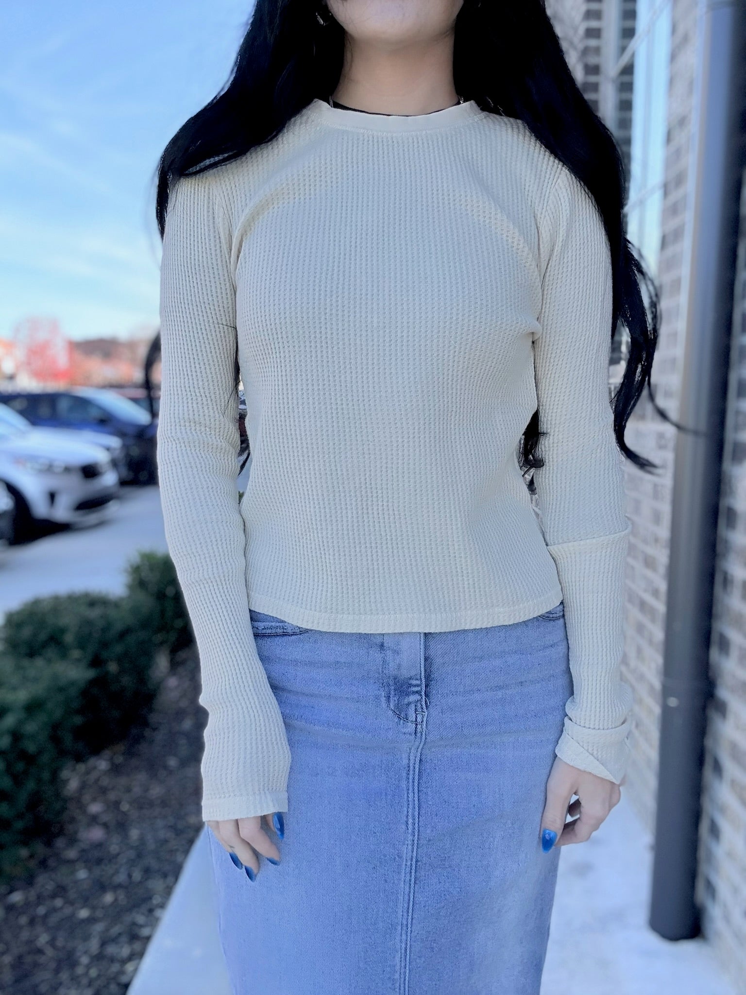 The Vanilla Cream Waffle Top is a blank canvas for endless casual outfits.